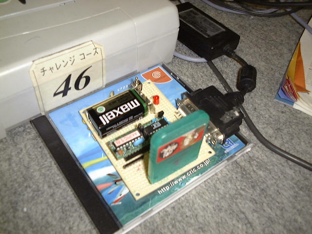 サークルでプレステのメモリーカードを読み書きする回路の写真をとってもらいました。写真をクリックすると別ウィンドウで拡大表示します。
