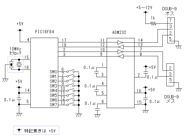 DSUB-9オス側(300bps〜):他の機器を接続(PCと通信する場合には要クロスケーブル)